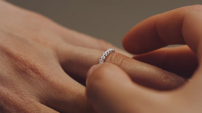 An engagement ring is given during a marriage proposal, typically featuring a central stone (solitaire, halo, or trilogy). The wedding band is exchanged on the wedding day and symbolises the official commitment. Traditionally simpler in design, wedding bands can also be set with precious stones. At Mayuri, our ruby, sapphire, emerald, or diamond wedding bands are worn on the left ring finger, beneath the engagement ring, closest to the heart.